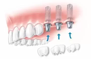 Самый надежный и эстетичный способ восстановления утраченного зубного ряда или зубов в разных частях челюстей. Сначала установка и прижевление дентальных имплантов. Затем крепится коронка из металлокерамики или диоксид циркония.