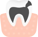 Как выглядит: Более глубокие кариозные полости (углубления], в которые попадает пища.